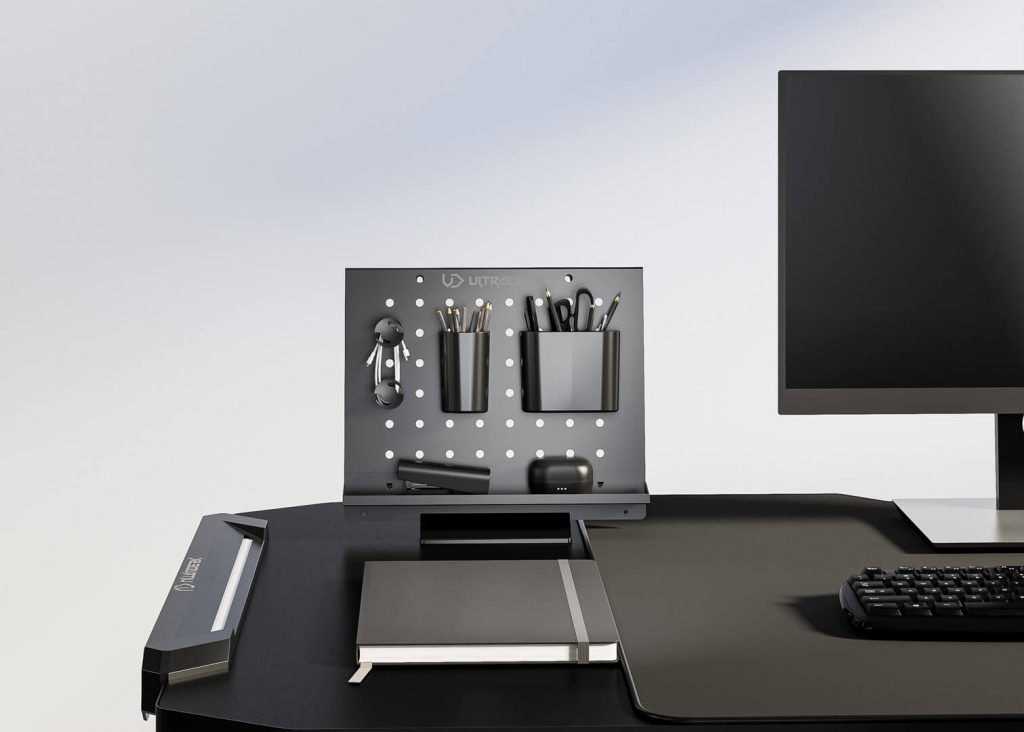 Eine wertvolle Ergänzung für jeden Computertisch. Der ULTRADESK CLIFF Organizer bietet eine komfortable Plattform für die vertikale Aufbewahrung kleiner Accessoires. Dadurch nehmen sie keinen wertvollen Platz auf dem Desktop weg. Der vorgestellte Organizer erleichtert die Ordnung auf Ihrem Tisch und ermöglicht es Ihnen, mehr kleine Gegenstände griffbereit aufzubewahren.