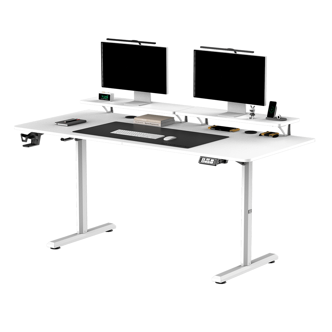 Über das intelligente Bedienfeld können Sie nicht nur die Arbeitsfläche anheben und absenken, sondern auch Ihre bevorzugten Höhen speichern. Herzstück des Panels ist ein spezieller Prozessor, der beim Heben eine perfekte Synchronisation beider Motoren gewährleistet. Das Steuerungspanel wird auf der rechten Seite knapp unterhalb der Vorderkante der Arbeitsplatte montiert. Dadurch müssen Sie nie vom Stuhl aufstehen, um die Einstellungen zu ändern.