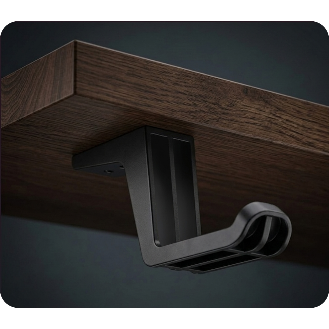 Der universelle, unter dem Schreibtisch montierte Kopfhörerhalter ist eine praktische Lösung zur effizienten Organisation Ihres Arbeitsplatzes. Die robuste Konstruktion, befestigt mit den mitgelieferten selbstbohrenden Schrauben, garantiert hohe Stabilität und trägt problemlos bis zu 3 kg. Dank seines universellen Designs passt er zu jeder Tischplatte und bietet einen sicheren Platz für nahezu jedes Kopfhörermodell. Ideal für alle, die ihre Ausrüstung stets griffbereit haben und gleichzeitig Ordnung und Ästhetik bewahren möchten.