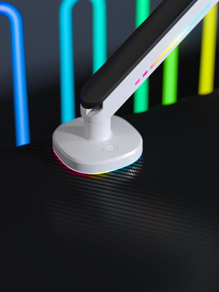 Lassen Sie sich von der beeindruckenden LED RGB Beleuchtung überraschen. Sie bietet eine große Auswahl an verfügbaren Farben und 20 Spezialmodis. Die LEDs sind im Inneren der Halterung unter speziellen Paneelen montiert, welches die gesamte Struktur perfekt ergänzen. Die LED RGB Beleuchtung unterstreicht perfekt den Charakter der gesamten Gaming Station. Die präsentierte Beleuchtung sieht in jedem Modus beeindruckend aus. Überzeugen Sie sich selbst!