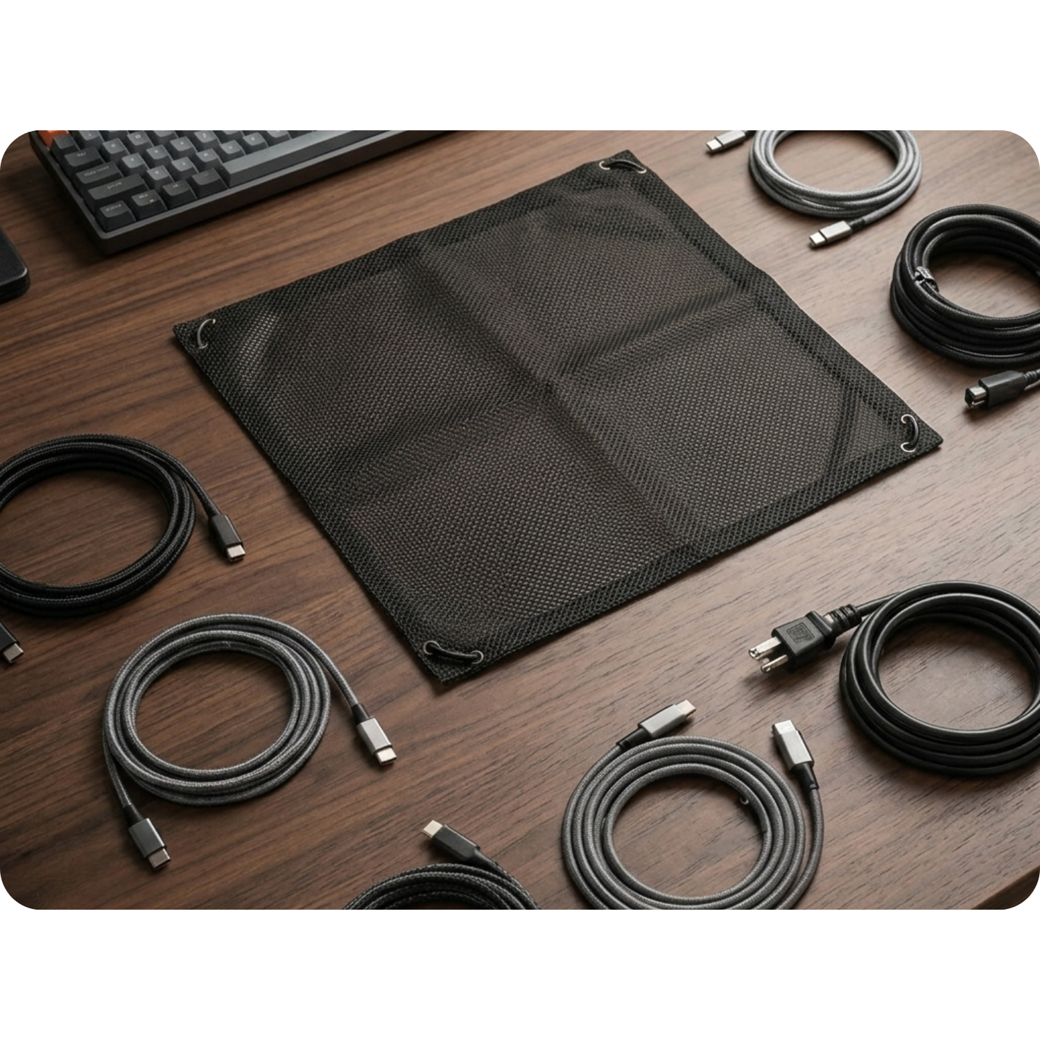 Das elastische Kabelnetz zur Untertischmontage ist eine praktische Lösung, um Ordnung am Arbeitsplatz zu halten. Mit den Maßen 45 × 45 cm bietet es ausreichend Platz für Steckdosenleisten, Ladegeräte und Kabel und beseitigt das Chaos unter dem Schreibtisch. Das universelle Design passt zu jedem Tischtyp, während die flexible Konstruktion eine einfache Anpassung an die gelagerten Gegenstände ermöglicht. Ideal für alle, die Wert auf Ästhetik und Funktionalität legen.