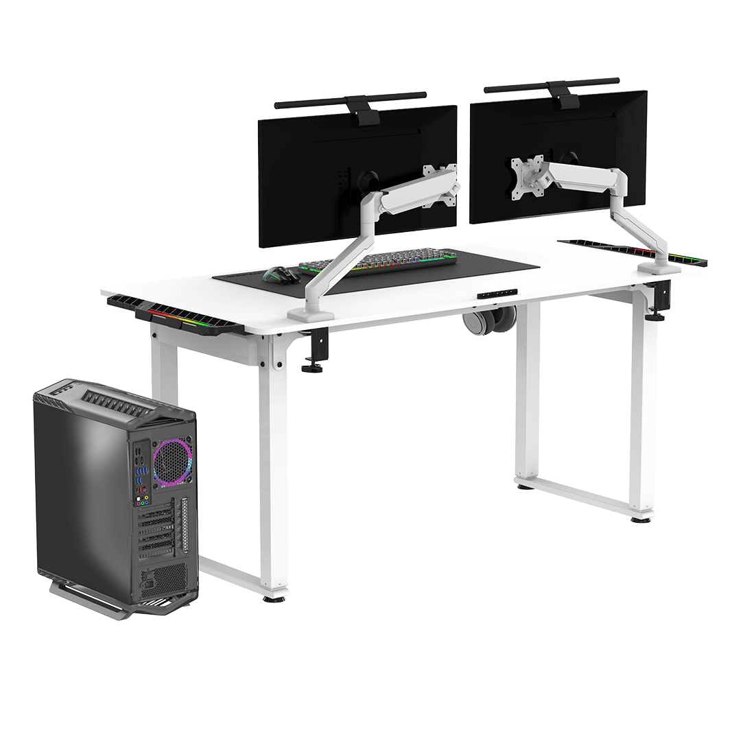 Dieses neue Design ermöglicht es den Spielern, ihre Beine unter der Tischplatte frei auszubreiten. Schmerzhafte Konfrontationen zwischen den Füßen und hartem Metall sind nicht zu befürchten, was zu einem erhöhten Komfort bei langen Gaming Sessions beiträgt. Der Verzicht auf eine untere Querstrebe ermöglicht zudem die komfortable Nutzung eines hohen Computergehäuses. Sie können die Zentraleinheit frei platzieren, ohne die Einschränkungen herkömmlicher Tischkonstruktionen. Der Rahmen ohne die untere Quertraverse wirkt ästhetisch ansprechend und modern.